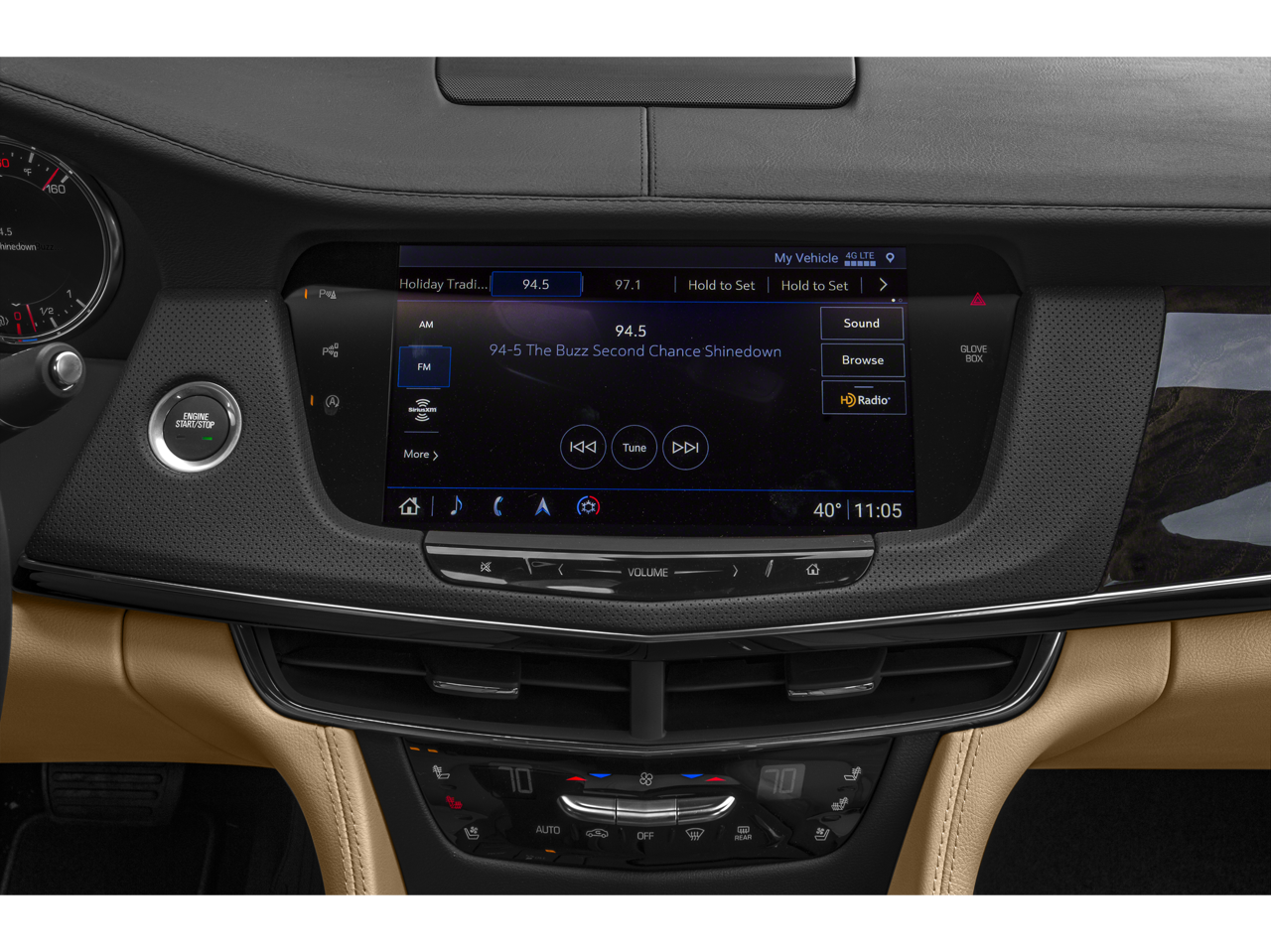 - Cadillac user experience with embedded navigation AM/FM stereo with connected navigation providing real-time traffic, 10.2" diagonal color information display, dual USB ports, auxiliary audio port, rotary infotainment controller, Natural Voice Recognition and Phone Integration for Apple CarPlay and Android Auto capability for compatible phone, Connected Apps and Teen Driver